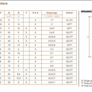 | Model | Wrainox20 1,1, Wrainox15 1,1, Wrainox20 0,75, Wrainox15 0,75, WUP11 0,75, WUP25 0,75, WUP16 1,1, WUP25 1,1, WUP40 1,1 |